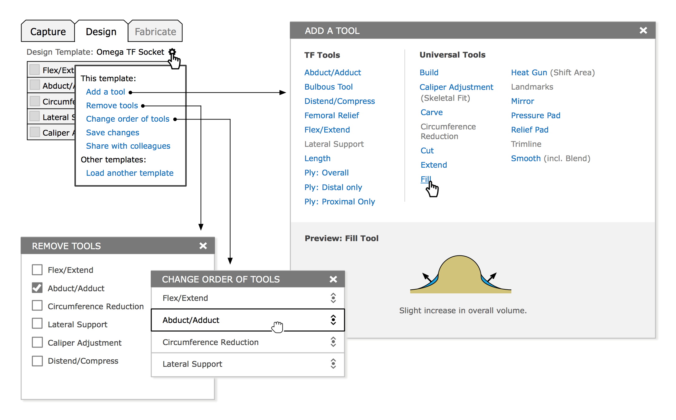 Solution: A toolbox/wizard hybrid clearly and efficiently guides clinicians through capture, design and fabrication, shows progress, and provides timely access to a variety of context-relevant tools. Clinicians can also customize the workflow to align with the specific needs and preferences of their practice.